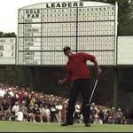 Getty Images 13 Apr 1997: Tiger Woods of the USA celebrates after sinking a 4 feet putt to win the US Masters at Augusta, Georgia.